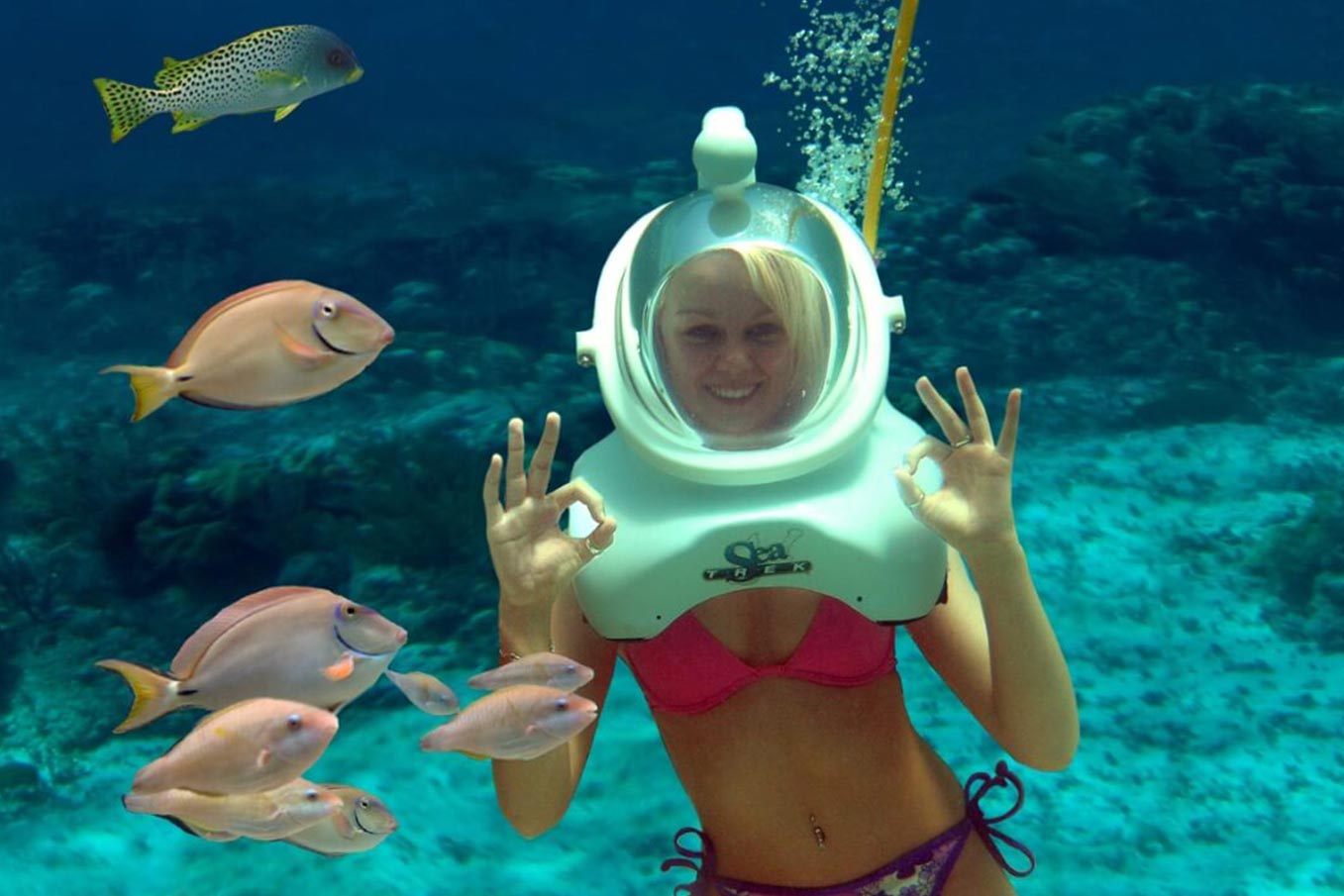 En este acuario marino podrás jugar con leones de mar, nadar con tiburones y rayas, practicar snorkel o Sea-Trek bajo el agua, navegar en catamarán y nadar en las aguas poco profundas de la Piscina Natural, justo frente a la hermosa costa de playa Bávaro.